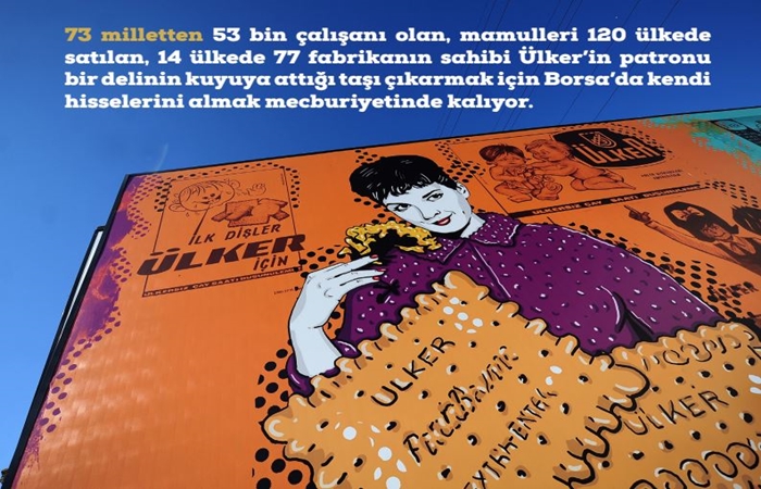 73 milletten 53 bin çalışanı olan, dünyada bisküvide üçüncü, çikolatada sekizinci sırada bulunan, mamulleri 120 ülkede satılan, 14 ülkede 77 fabrikanın sahibi Ülker’in patronu bir delinin kuyuya attığı taşı çıkarmak için Borsa’da kendi hisselerini almak mecburiyetinde kalıyor.