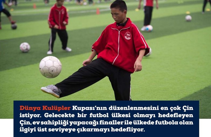 Dünya Kulüpler Kupası’nın düzenlenmesini en çok Çin istiyor. Gelecekte bir futbol ülkesi olmayı hedefleyen Çin, ev sahipliği yapacağı finaller ile ülkede futbola olan ilgiyi üst seviyeye çıkarmayı hedefliyor. Çinli firmalar şimdiden sponsorluk için sıraya girmiş bulunuyor. Dünyanın en büyük e-ticaret firması Alibaba, 2022’ye kadar FıFA Dünya Kulüpler Kupası’nın sponsoru olurken, bir başka Çinli dev Wanda Grup Mart ayında FIFA’nın ana sponsorlarından oldu.