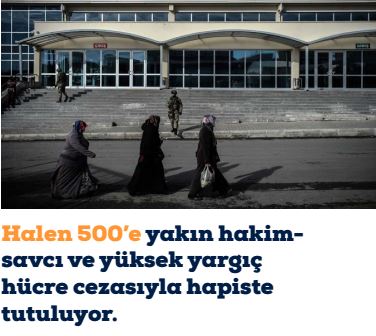 6 KHK ile TSK ve darbe ile ilişkileri olduğu iddiasıyla ihraç edilen asker sayısı 4 bin 300, tutuklanan ordu mensubu 7 bin civarında olmasına rağmen, sadece emniyette 20 bin, milli eğitimde 30 binin üzerinde memur işten atıldı. Darbenin ertesi sabahında tutuklama kararı alınan 3 bin hakim ve savcı ile başlayıp 4 bin 700’e yakın hakim savcı ihraç edildi, bunların 3 binden fazlası tutuklandı. Halen 500 yakın hakim-savcı ve yüksek yargıç hücre cezasıyla hapiste tutuluyor. Aralarında baro başkanlarının da yer aldığı, 250’den fazla avukat tutuklandı, yüzlercesi hakkında yakalama kararı çıkarıldı. Sulh Ceza Hakimlikleri eliyle kitlesel gözaltı ve tutuklamalar gerçekleştirildi. Ağır Ceza Mahkemeleri’nin elindeki tüm yetkiler, (dinleme, el koyma, tutuklama) tek hakimin bulunduğu Sulh Ceza’lara verildi. KHK’lar marifetiyle, Anayasa, TCK, CMUK’daki düzenlemelere bile sığmayacak yasalar yapıldı; haksız yere gerçekleştilen gözaltı, tutuklama, işkence ve kötü muamelelerin üstü örtülmek istendi. 372 cezaevi doldu, taştı; cezaevlerindeki tutuklu sayısı 200 binleri aştı, bazı cezaevlerindeki doluluk oranları yüzde 150’yi buldu. Masum insanlar hapse atılırken, adi suçlular, hırsızlar, taciz-tecavüz, uyuşturucu hatta cinayet suçluları, getirilen yeni tutukluluk düzenlemeleri ile salıverildi. Bu arada HSYK, Yargıtay, Danıştay ve Anayasa Mahkemesi gibi yüksek yargı kurumların tamamen Cumhurbaşkanlığı ve hükümet kontrolüne girdi. Siyasi kararlar aldı, almaya devam ediyor.