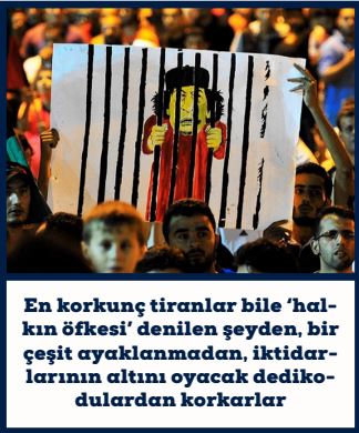 Ama pratikte, aslında padişahlar, krallar ve sultanlar da ‘halka dayanarak’ hükmederler. En korkunç tiranlar bile ‘halkın öfkesi’ denilen şeyden, bir çeşit ayaklanmadan, iktidarlarının altını oyacak dedikodulardan korkarlar. Bu ‘halkın öfkesi’ her zaman yığınların sarayları basıp kralları alaşağı etmesi anlamına gelmez. Padişahların seçimle belirlenmediği Osmanlı’da mesela ‘ahalinin gayrimemnunluğu’ çoğu zaman Ulema’nın da Yeniçerilerin de ‘bahanesi’ olmuş ve aslında Padişah’ı alaşağı eden, halkın da bir çeşit onayını alan ‘muhalefet’ olmuştur.