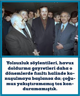 Çoğumuz gibi AB liderleri de buna inanmış olacak ki henüz çiçeği burnunda genel başkan olduğu dönemde bile devlet başkanı protokolüyle ağırlamaktan geri durmamışlardı. Önündeki tüm engelleri sihirli bir değnekle dokunmuşçasına aşarak Başbakanlık koltuğuna oturduğunda ülkenin makus talihini değiştireceğini ummuştuk. İktidarının birinci ve ikinci dönemlerinde her şey iyi gidiyordu. AB uyum yasaları, demokratikleşme paketleri, AB üyeliği için sarf edilen gayretler takdire şayandı doğrusu. Umutlanmakla haklı olduğumuzu düşünmeye başlamıştık. Yolsuzluk söylentileri, havuz doldurma gayretleri daha o dönemlerde fısıltı halinde konuşulmaya başlansa da; çoğumuz yakıştıramamış toz konduramamıştık.