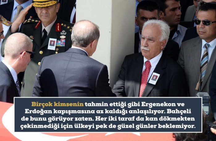 Birçok kimsenin tahmin ettiği gibi Ergenekon ve Erdoğan kapışmasına az kaldığı anlaşılıyor. Bahçeli de bunu görüyor zaten. Her iki taraf da kan dökmekten çekinmediği için ülkeyi güzel pek de günler beklemiyor. Bir taraf kaos isterken diğer taraf kontrollü yangınlarla son kalan muhalifleri de bertaraf etme derdinde. Erdoğan, hepsi birer trol olan bürokratları ile devlete hakim olduğunu sanıyorsa fena halde yanılıyor.