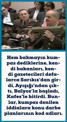 Kimse kalkıp adli süreç demesin! Bakın 17-25 Aralık’a… Emniyete, yargıya biçim verilip aylar içinde kapatıldı. Dosyalar imha edildi. Hoş, yargı safahatına girmiş hiçbir bilgi ve belge kaybolmaz, bunu da en iyi kendilerini akladığını zannedenler bilir. Demek ki istenirse şıp diye kapatılıyor. Davalar halen devam ettiği için belli ki istenmiyor! Belli ki, Ankara’daki egemenlik ve güç savaşı davaları bir biçimde “diri” tutuyor. Hem bakmayın kumpas dediklerine, kendi bakanları, kendi gazetecileri defalarca Sarıkız’dan girdi, Ayışığı’ndan çıktı, Balyoz’la başladı, Kafes’le bitirdi. Bunlar, kumpas denilen iddialara konu darbe planlarının kod adları.