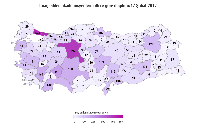 20 Temmuz 2016- 23 Şubat 2017 tarihleri arasında OHAL kapsamında 112 üniversiteden 4 bin 811 akademisyen (Profesör, Yrd. Doç.Dr. Doç. Dr., araştırma görevlisi) ihraç edildi. YÖK ve üniversite kadrolarından 1102 kişi ihraç edildi. Toplamda Yüksek öğrenim kurumlarından 5 bin 855 kişi ihraç edilmiş oldu.