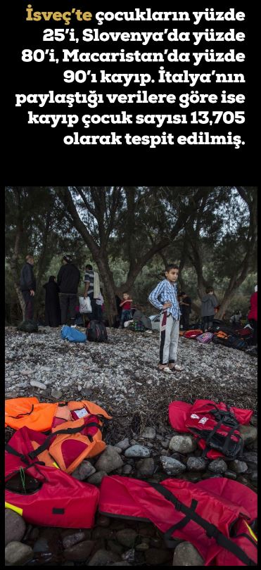 Türkiye, 4 Ağustos 2016 tarihinde sınırları içerisinde 1,213,289 Suriyeli çocuğun olduğu bilgisini paylaşırken, İtalya’ya 2015 yılında deniz yoluyla ulaşan 152,842 göçmenin 16,262’sini çocuklar oluşturuyor. İtalya’daki bu çocuk göçmenlerin üstelik 12,272’si herhangi bir yetişkin yakını olmadan gelmiş. Avrupa’ya geçiş kapılarının en önemlisi Yunanistan’da ise 2016 yılında ülkeye deniz yoluyla ulaşan yaklaşık 890 bin göçmenin yüzde 34’ü çocuk.
