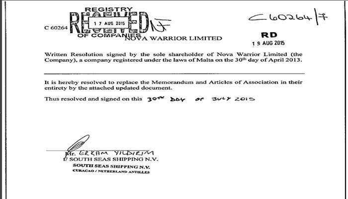 Ancak bu offshore şirketin gerçek sahibi Malta sicil kayıt belgelerine bakınca anlaşılıyor: South Seas adına evrakları bizzat Erkam Yıldırım imzalıyor.