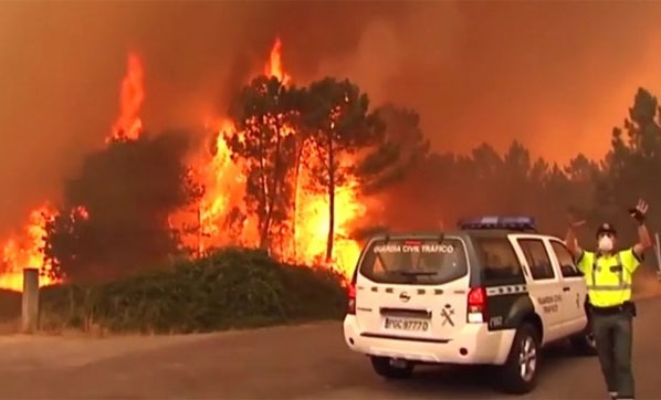 Portekiz’in başkenti Lizbon’un 200 km. kuzeydoğusundaki Pedrógão Grande bölgesinde cumartesi günü öğleden sonra çıkan orman yangınında can kaybı arttı. Yüzlerce itfaiyeci ve 160 yangın söndürme aracı, yangını söndürmek için seferber oldu. Alevlerin hızlı yayılması itfaiyenin işini zorlaştırıyor.