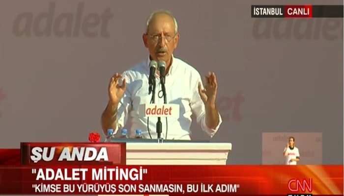 Enis Berberoğlu’nun tutuklanmasına ve diğer hukuksuzluklara tepki gösterip 25 gün önce Ankara’dan yola çıkan CHP lideri Kemal Kılıçdaroğlu, dün Maltepe’de toplanan 1 milyonu aşkın vatandaşa hitap etti.