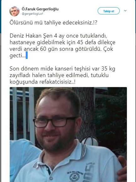 Duruma tepki gösteren eski Mazlum-Der Başkanı Ömer Faruk Gergerlioğlu, “Ölürse mi tahliye edeceksiniz?” diye sordu.