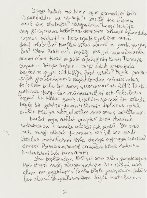 Yazı başlığından 10.5 yıl ceza alan gazeteciyim. Bir ayeti mesaj olarak yazdığım için 10.5 yıl ceza alan bir gazeteciyim. Tarihe böyle geçiyorum. Şükürler olsun. .. Okuyucularım beni böyle hatırlasın.