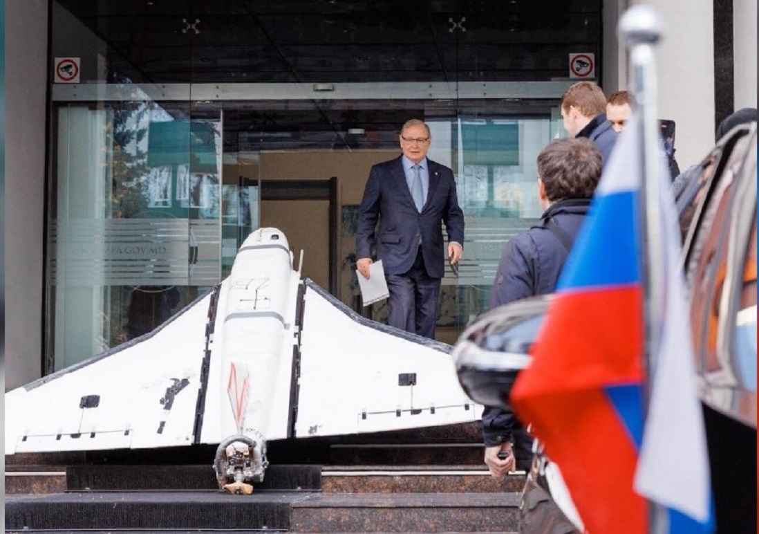 Dışişleri Bakanlığı, protesto için çağrılan Rusya’nın Kişinev Büyükelçisi Oleg Ozerov’a sürpriz yaparak Bakanlık girişine gelişinde evin üzerine düşen Rusya’ya ait droneyi sergiledi.
