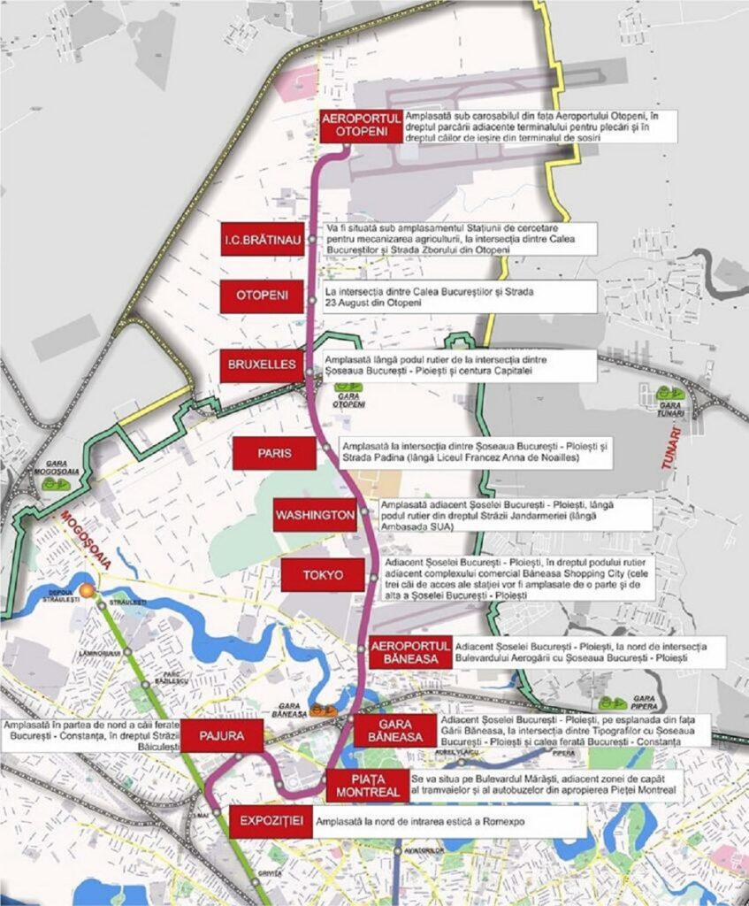 Băneasa alışveriş kompleksinin yanından geçecek metro hattı üzerindeki (1 Mai – Tokyo) arasındaki 6 istasyon ve tünelleri Türk firmaları inşa ediyor. Bu bölümün maliyeti yaklaşık 1,3 milyar ley tutuyor.